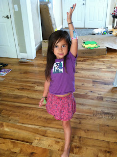 Then, I cut out some representational images of the major bones and had her put them in the proper place on the full-size body tracing we made of her the other day - she loves doing puzzles, and this was like a life-size puzzle!